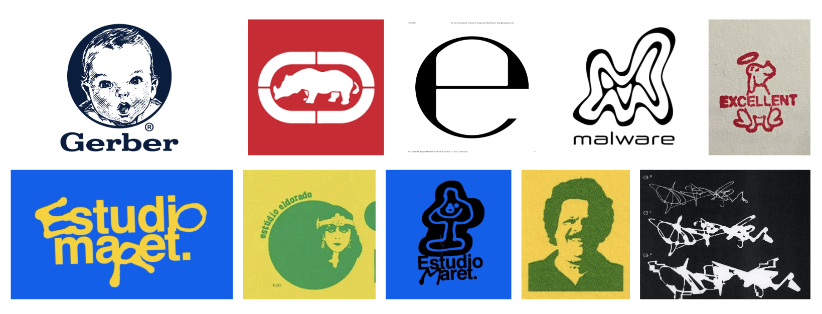 I started by selecting a handful of logos that embodied the style and elements that I wanted to include in my logo; a face, a handmade feel, and warped type.